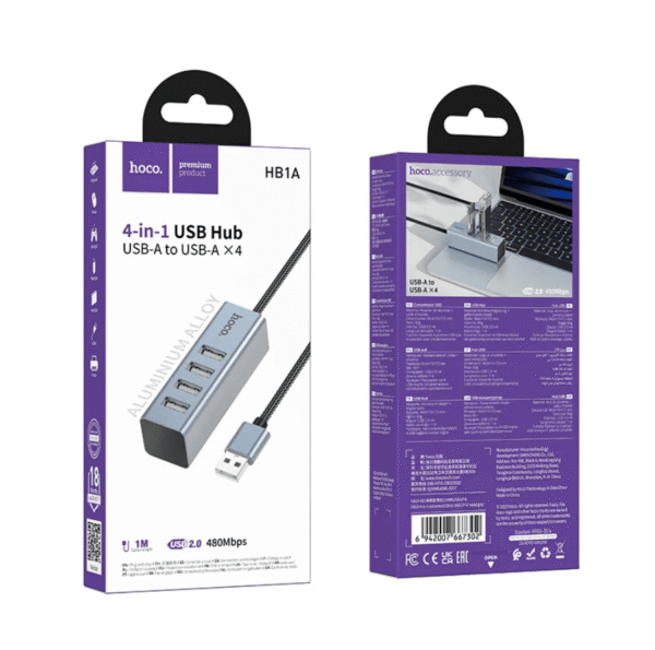 - 1 × HB1A 4-Port USB 2.0 Hub (1.0m cable)