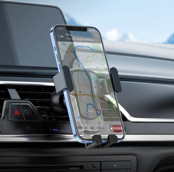 Keep your phone secure and easy to access while driving with the Hoco CA103 gravity car phone holder, designed for air vent mounting with a strong, stable grip. The Hoco CA103 gravity car phone holder uses a gravity-lock design that allows simple one-handed operation, making it easy to place and remove your phone while keeping it held firmly during driving.