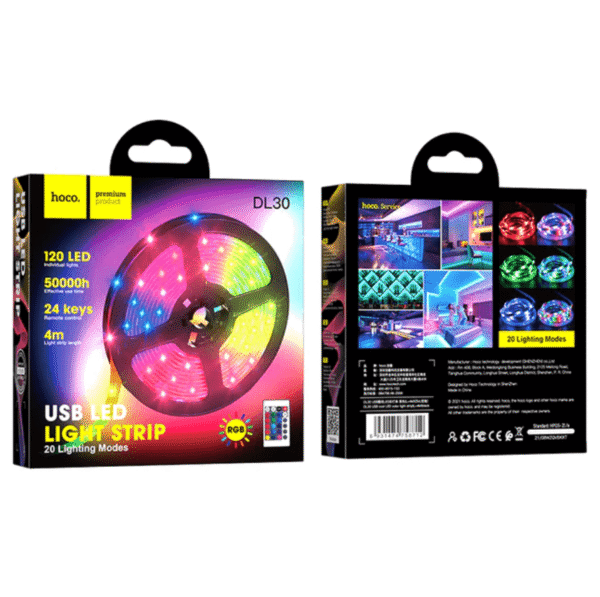 With 20 lighting modes and a 24-key remote control, the Hoco DL30 USB LED light strip lets you easily switch between colours, brightness levels, and effects to match your mood. Powered by USB (DC 5V), the Hoco DL30 USB LED light strip can be connected to USB adapters, power banks, laptops, or USB wall chargers, making it convenient for New Zealand homes.