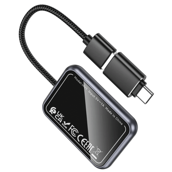 With both USB-A and USB-C plug support, the Hoco HU1 wireless CarPlay adaptor includes a USB-A to USB-C adapter for wider compatibility. Built with an aluminium-magnesium alloy body and tempered glass finish, the Hoco HU1 wireless CarPlay adaptor offers a premium look and durable construction for long-term use. If you want an easy plug-and-play wireless CarPlay upgrade, the Hoco HU1 wireless CarPlay adaptor is a smart choice for NZ users.