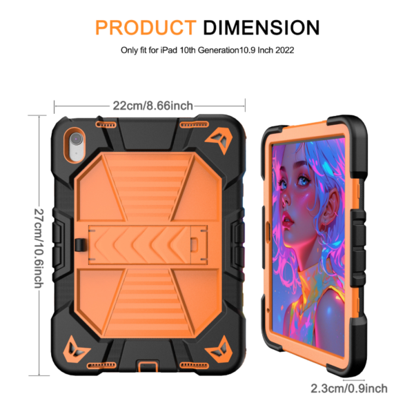 iPad 10th / 11th Gen 10.9″ Shockproof Rugged Cover with Stand (Orange)