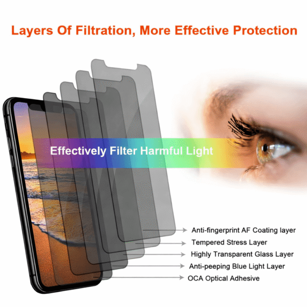 The built-in anti-spy privacy filter blocks side-angle viewing, keeping your personal information safe from unwanted eyes while maintaining a clear front display. This iPhone 11 privacy screen protector also includes an oleophobic coating to reduce fingerprints, smudges, and oil marks for a cleaner screen experience.