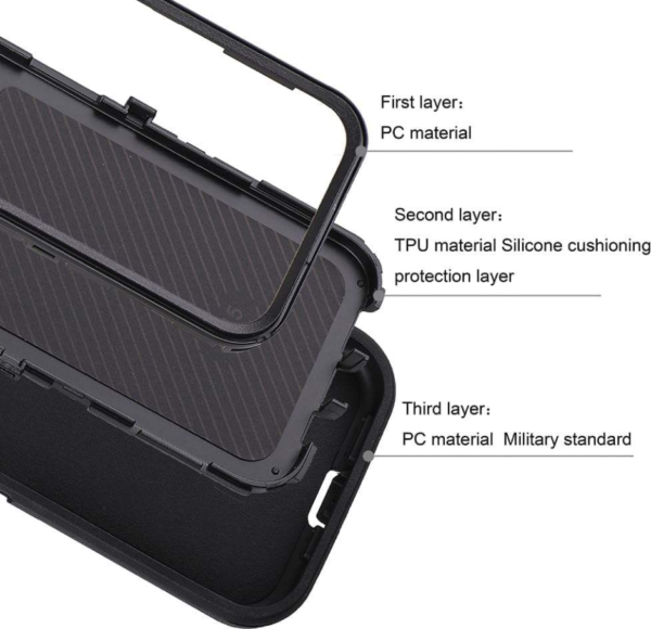 The iPhone 13 Triple Layer Armor Heavy Duty Case is designed to provide maximum protection for your smartphone during everyday use. Built with a strong triple-layer construction, this rugged protective case combines shock-absorbing TPU layers with a durable hard PC outer shell to protect your device from accidental drops, impacts, scratches, and daily wear.