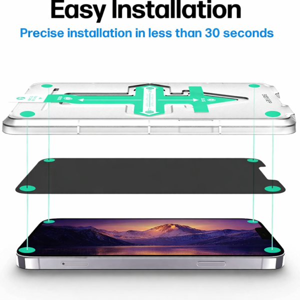 Precision-cut edges ensure the iPhone 15 Pro Privacy Tempered Glass Screen Protector fits perfectly on the display while maintaining a case-friendly design compatible with most phone cases. The bubble-free adhesive layer allows quick and easy installation so the iPhone 15 Pro Privacy Tempered Glass Screen Protector attaches smoothly without air bubbles.