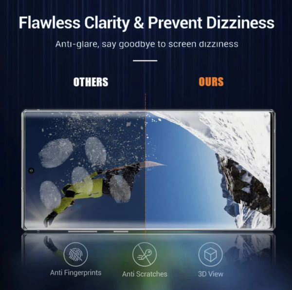 The advanced oleophobic coating on this Samsung Galaxy S21 Ultra screen protector reduces fingerprints, smudges, and oil marks, keeping your screen clean and smooth. With HD transparency, this Samsung Galaxy S21 Ultra screen protector preserves original brightness, sharp detail, and vibrant colors for an enhanced viewing experience.
