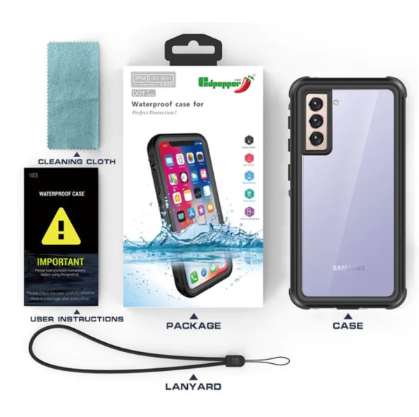 Protect your device with the Samsung Galaxy S24 FE Redpepper Waterproof Case, designed for complete waterproof, dustproof, and shockproof performance. This genuine Redpepper Waterproof Case Samsung Galaxy S24 FE delivers heavy-duty 360° protection while maintaining your phone’s sleek look with a stylish clear back design.