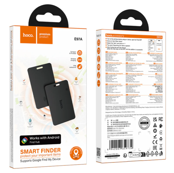 Keep your wallet safe with the Smart Wireless Tracker Card Android Find My Device Rechargeable (E97A), designed exclusively for Android users.