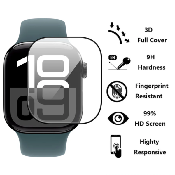 Soft Glass TPU Layer: The Soft Glass TPU Display Protector for Apple Watch Series 10 flexes instead of cracking or shattering.