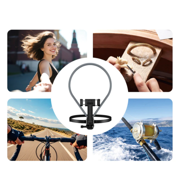 The flexible and ergonomic design ensures all-day comfort, while the adjustable viewing angle allows you to shoot stable POV footage. The Universal Neck Mount Phone Holder POV Vlogging Action Camera Mount supports both smartphones and action cameras, offering maximum versatility for content creators.