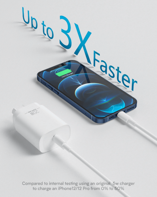 - 20W USB-C PD charger for fast charging