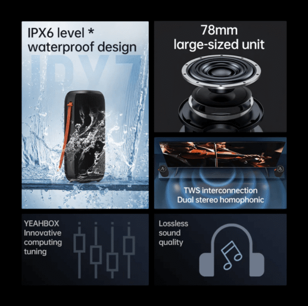With stable Bluetooth connectivity and a rugged build, the VFan BS07 15W Bluetooth speaker offers reliable wireless streaming wherever you go. If you want a waterproof portable speaker with lights, the VFan BS07 15W Bluetooth speaker is a great option for NZ customers who want sound, style, and portability in one.
