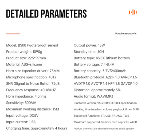 - 15W output power for clear sound and deeper bass